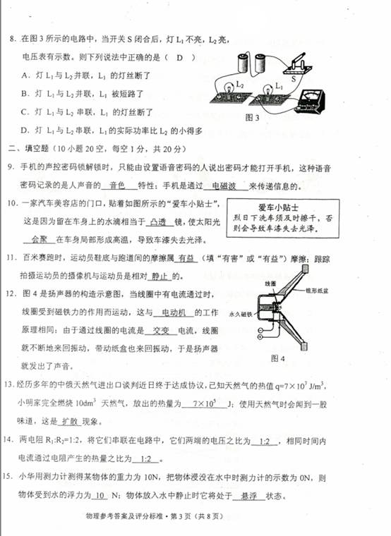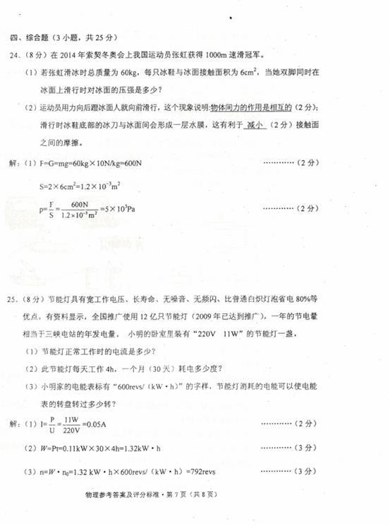 2014年云南省曲靖市中考物理真题试卷附答案(扫描版)