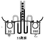 33.如图,甲、乙两透明密闭容器中都有一段电阻丝