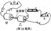 23.小明以塑料管为连接轴将两个玩具电机的转轴连接起来,并连接如图所示的电路,开关S闭合后,灯泡发光.下列说法不正确的是( )