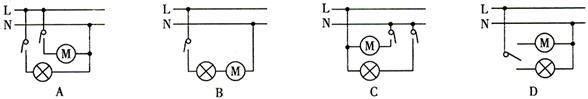 24.在卫生间中安装有排风扇和照明灯,它们既能同时工作又能单独工作,下面各图中满足上述要求且符合安全用电的是( )