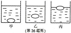 26.在家庭实验室中,小明把鸡蛋放入盛水的杯中,鸡蛋沉在杯底如图甲;向杯中加盐,鸡蛋悬浮如图乙;再加盐鸡蛋漂浮如图丙.三种情况下,各物理量间的关系正确
