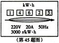 45.(2分)电能表是用来测量 ________的仪表.荣荣家的电能表的表盘如图所示.她想知道电能表是否准确,于是将一只标有“220V 60W”的白炽灯单独接入电路,此时灯泡正常发光,检测中发现2min电能表的转盘转了7转.由此判断转盘转速偏 ________.
