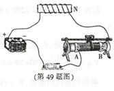 49.(2分)请用笔画线代替导线将如图所示的实物图补充完整,使滑动变阻器的滑片向A端移动时,通电螺线管的磁性增强,并标出通电螺线管的N极.
