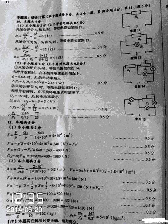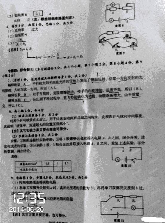 专题三:电与磁(本专题满分14分,共2个小题,第5小题9分,第6小题5分)