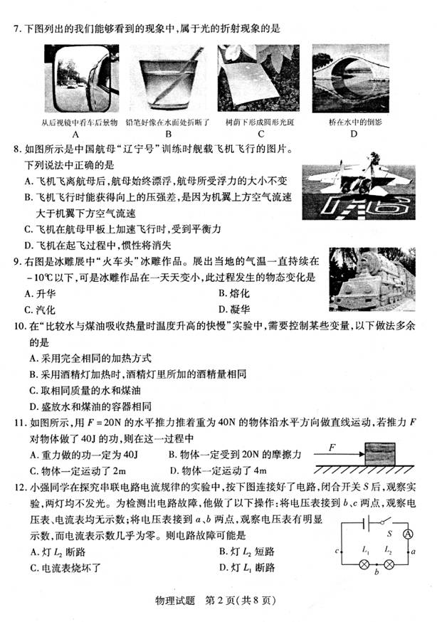 2012年山东省聊城市中考物理真题试卷附答案