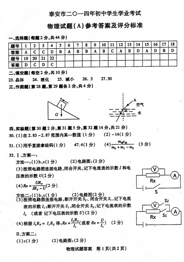 2014年山东省泰安市中考物理真题试卷附答案(扫描版)