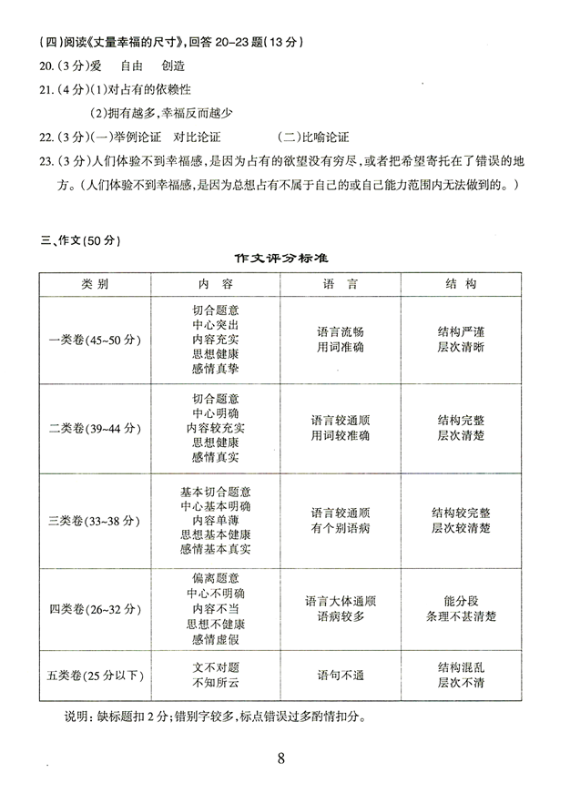 20.(3分)作者主张用什么来丈量幸福的尺寸?