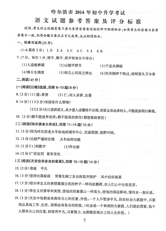 19.(3分)你是如何理解文章标题“天空没有多余的星星”的?