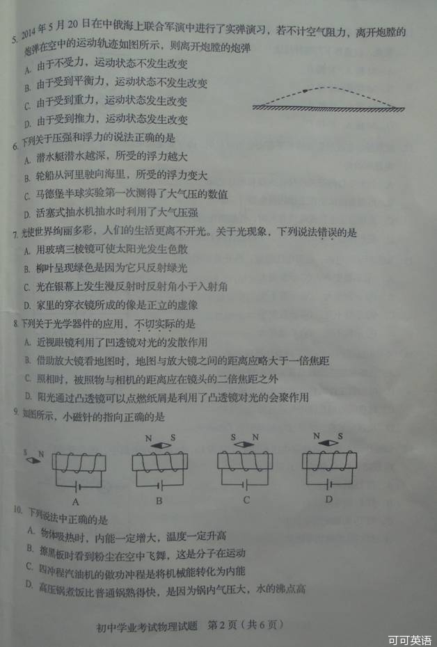 2014年山东省淄博市中考物理真题试卷(扫描版)