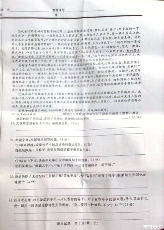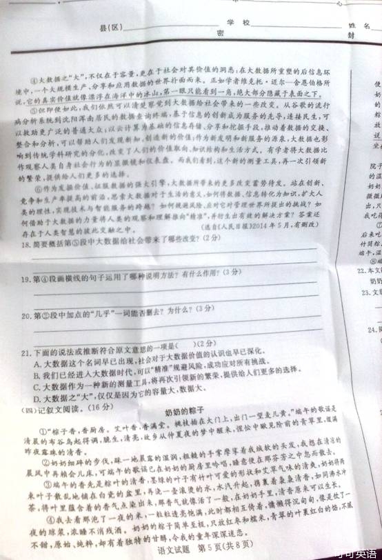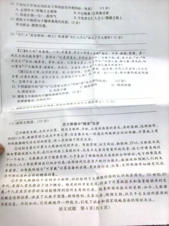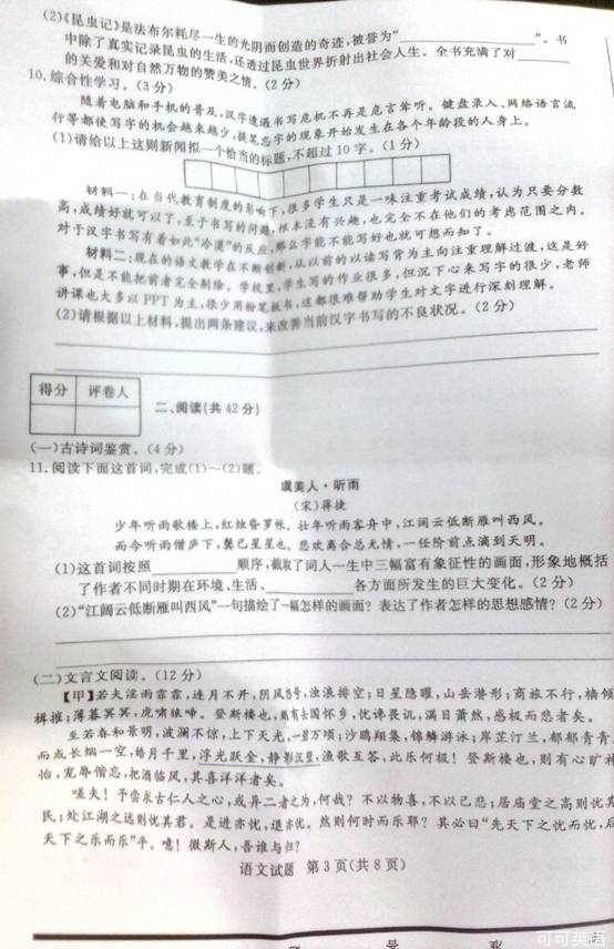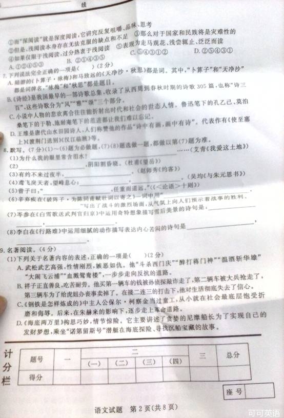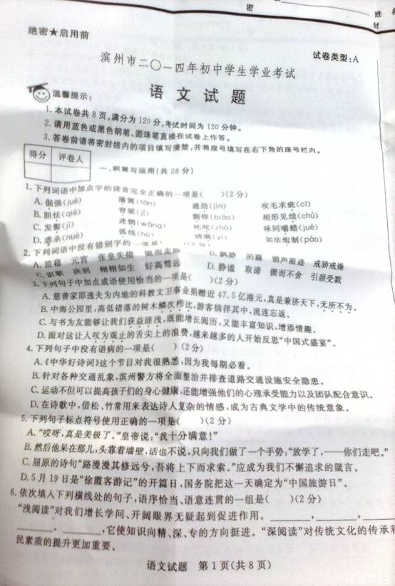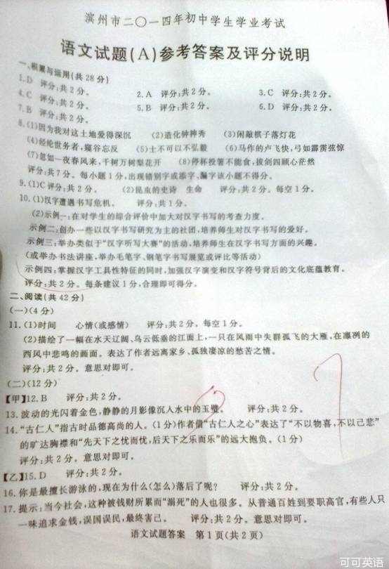 2014年山东省滨州市中考语文真题试卷附答案(扫描版)