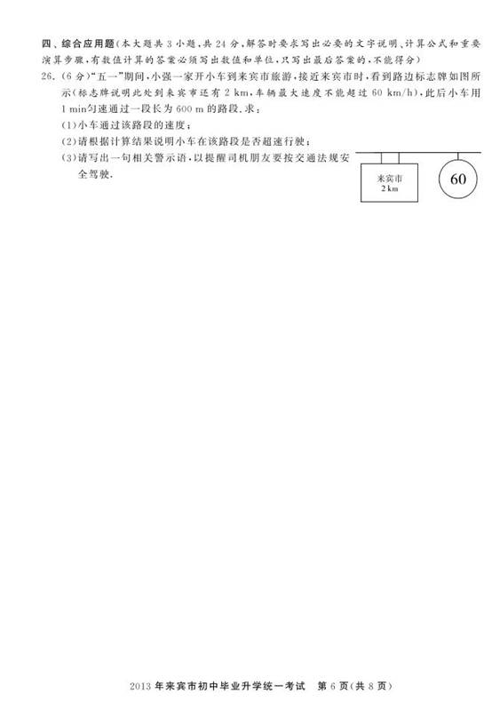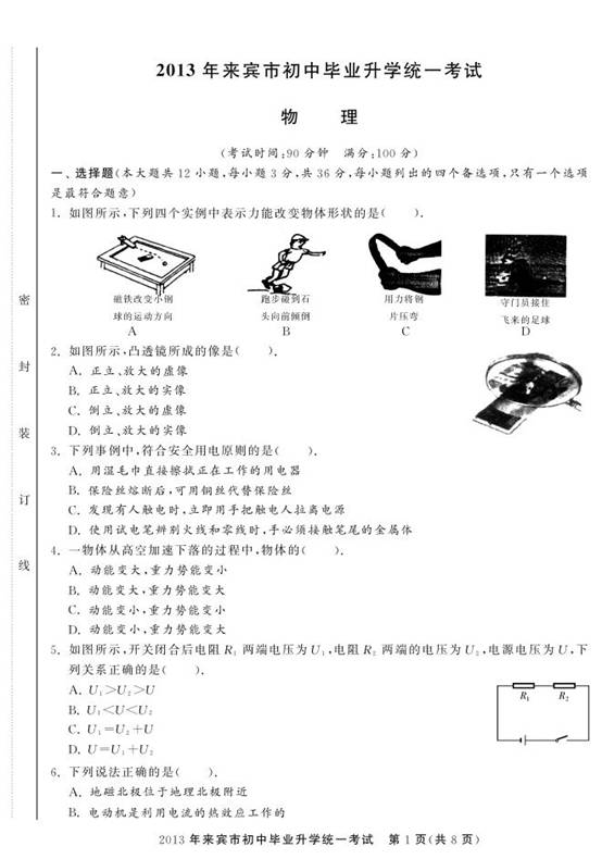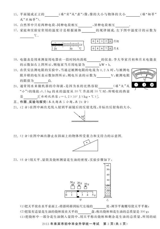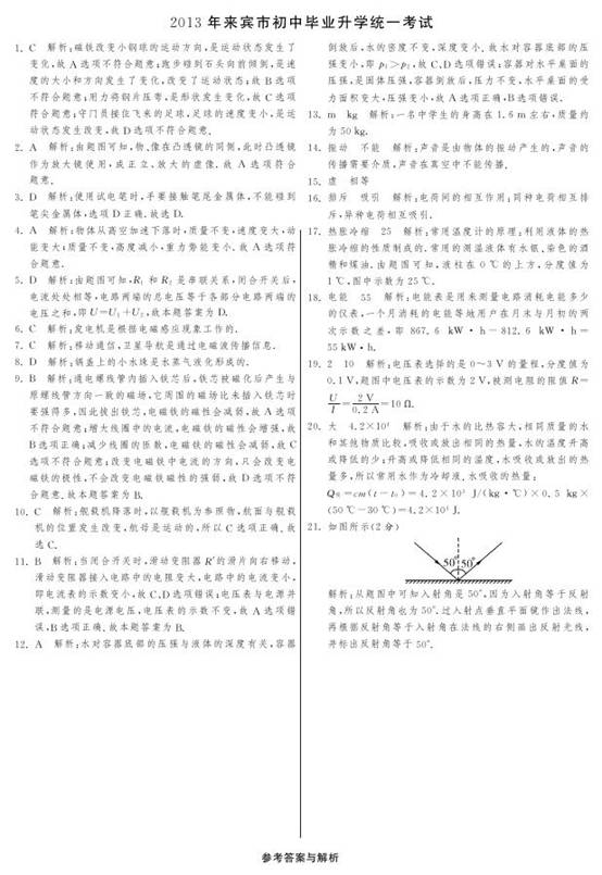 2013年广西来宾市中考物理真题试卷附答案(扫描版)