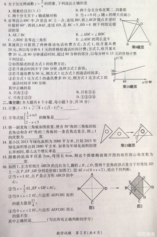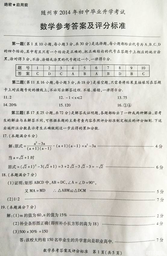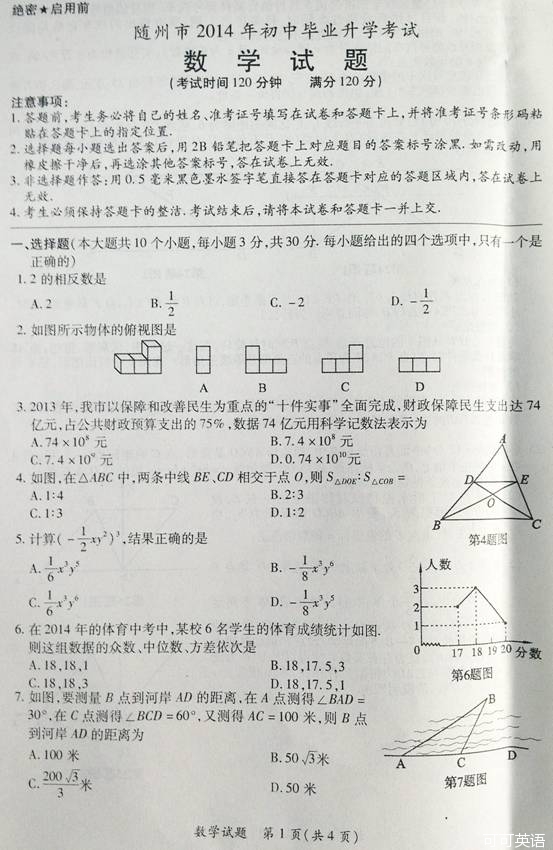 2014年湖北省随州市中考数学真题试卷附答案(扫描版)