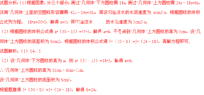 (2)若“几何体”的下方圆柱的底面积为15cm2,求“几何体”上方圆柱的高和底面积.