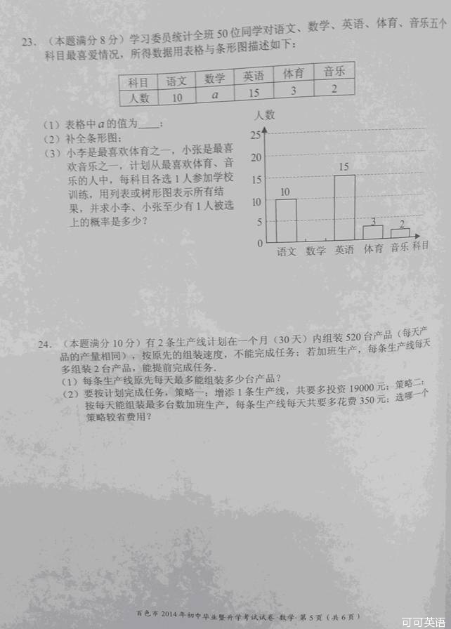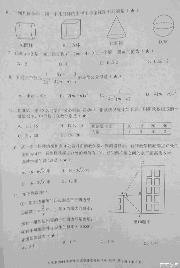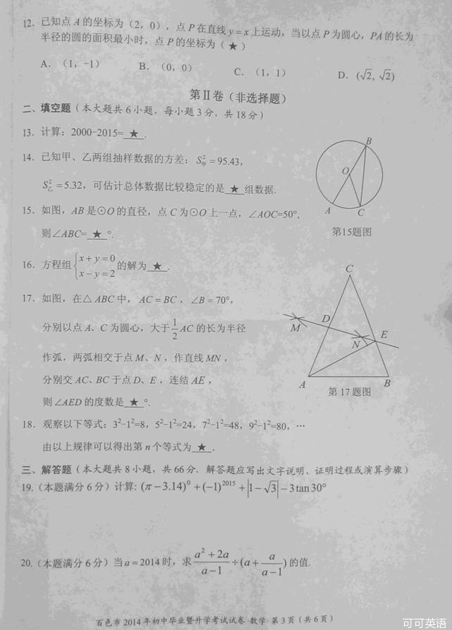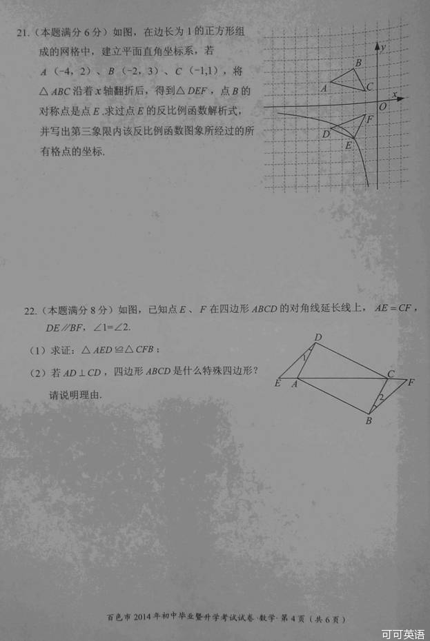 2014年广西百色市中考数学真题试卷(扫描版)
