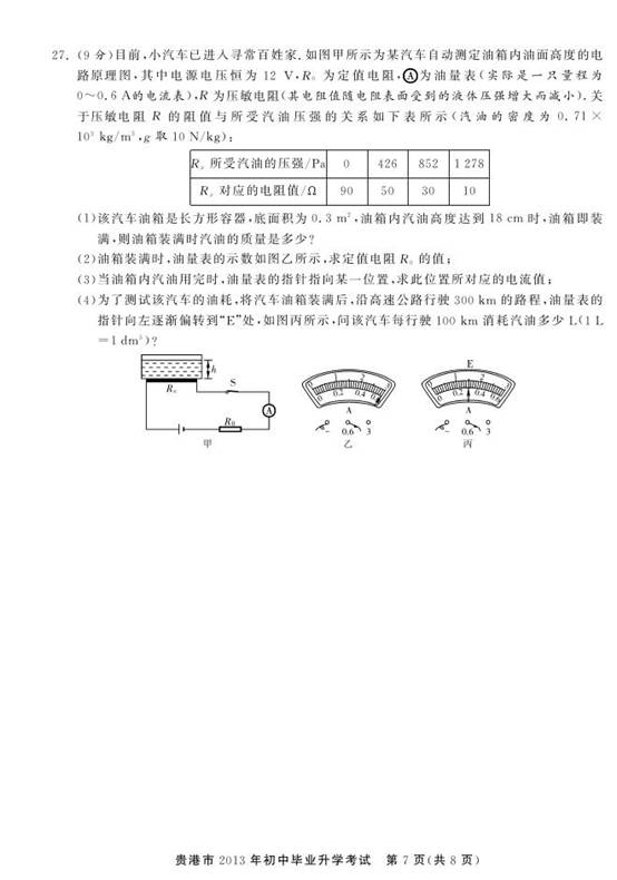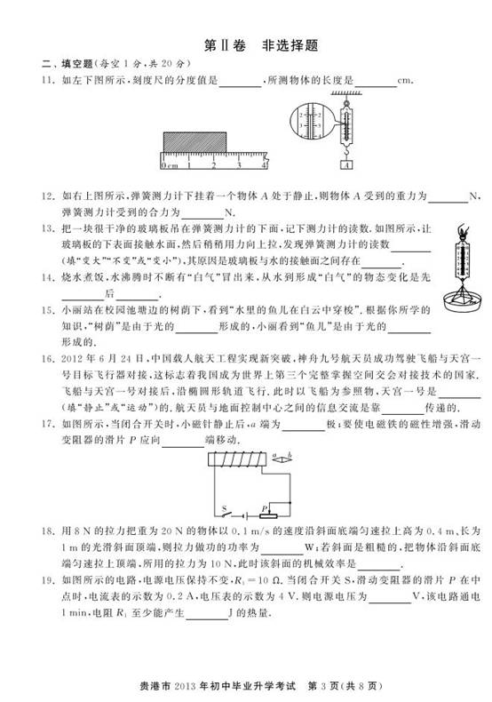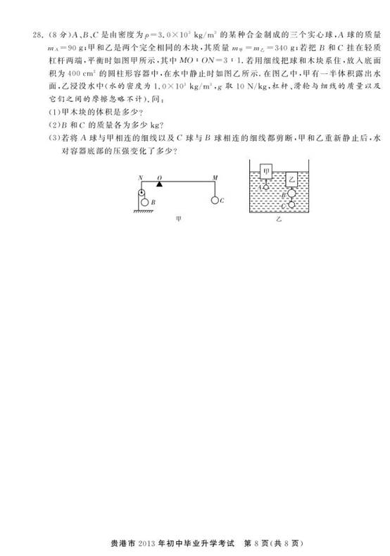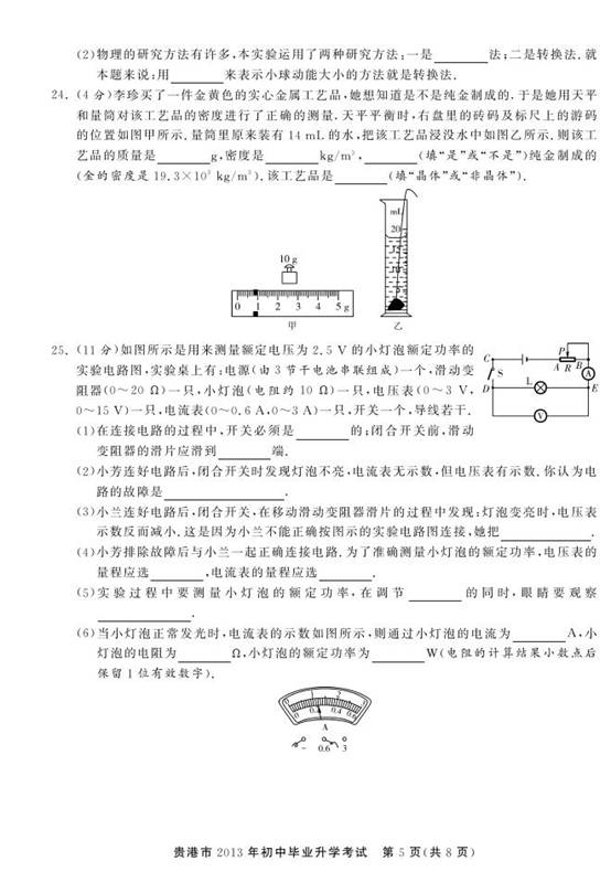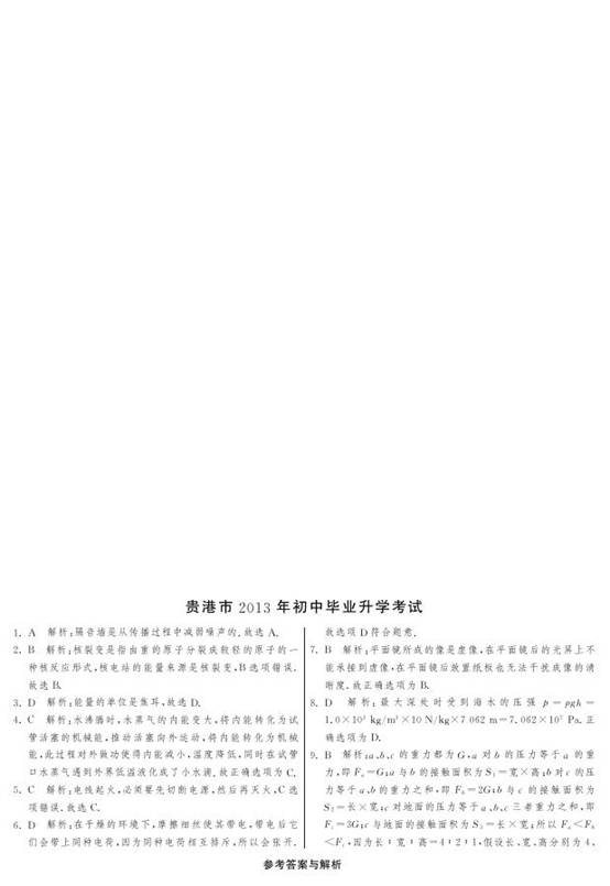 2013年广西贵港市中考物理真题试卷附答案(扫描版)