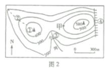 图2示意图某区域等高线地形图,读图回答3~4题。