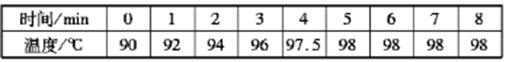 (2)纠正错误后,小文同学观察了水在加热过程中温度随时间的变化情况,并记录了有关数据如下表。请根据表中数据在方格纸上作出水沸腾时温度随时间变化的图象。