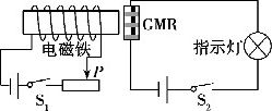 8.如图所示,是演示巨磁电阻(GMR)特性的原理示意图。开关S1、S2闭合时,向左稍微移动滑动变阻器的滑片P,指示灯的亮度明显变亮。