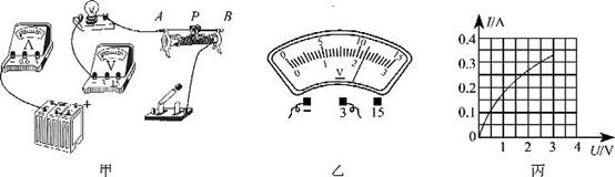 (2)某次实验时,电压表示数如图乙所示,则此时滑动变阻器两端的电压为V;如果要使小灯泡正常发光,变阻器的滑片P应该向(选填“A”或“B”)端移动。