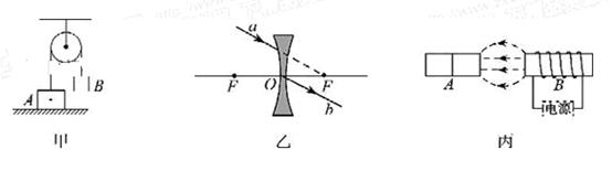 11.如图丙所示,为永磁体A和电磁铁B之间的磁场分布。请根据图中磁感线的方向标出永磁体A右端的磁极和电磁铁B中电源的“+”、 “-”极。