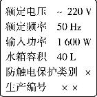 15.(6分)某电热淋浴器的铭牌如右表所示。小军同学按铭牌要求给淋浴器装满水,正常工作100min,观察到淋浴器上温度计示数由l5℃上升到65℃。已知