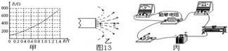 ① 将该磁敏电阻R放置在磁场中的1处,利用图13丙所示的实验电路,改变滑动变阻器的阻值得到3组电压及电流的实验数据,如表格所示。则该磁敏电阻的测量值是 Ω,位置1处的磁感应强度为 T。