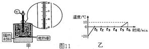 16.(7分)用图11甲所示的实验装置探究烧杯内的某种物质熔化时温度的变化规律。实验过程中,电热棒的功率保持恒定。