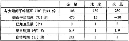 ① 行星表面平均温度与行星离太阳的距离远近关系是: (21) 。