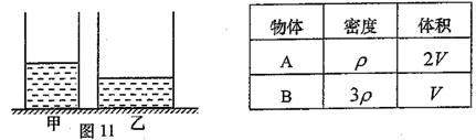 21.如图11所示,水平地面上的轻质圆柱形容器甲、乙分别盛有质量均为