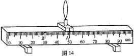 24.在焦距为5厘米、10厘米或15厘米的凸透镜中选择一个放置于光具座的A点处,如图14所示。