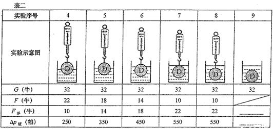 相关的猜想(选填“可以”或“不可以”),依据是:同一物体浸入盛有某种液体的同一容器中, (10) 。