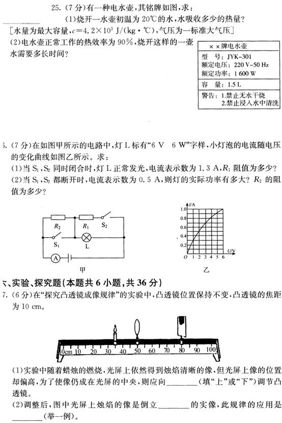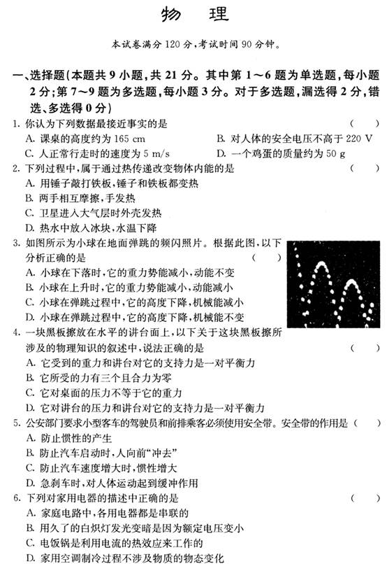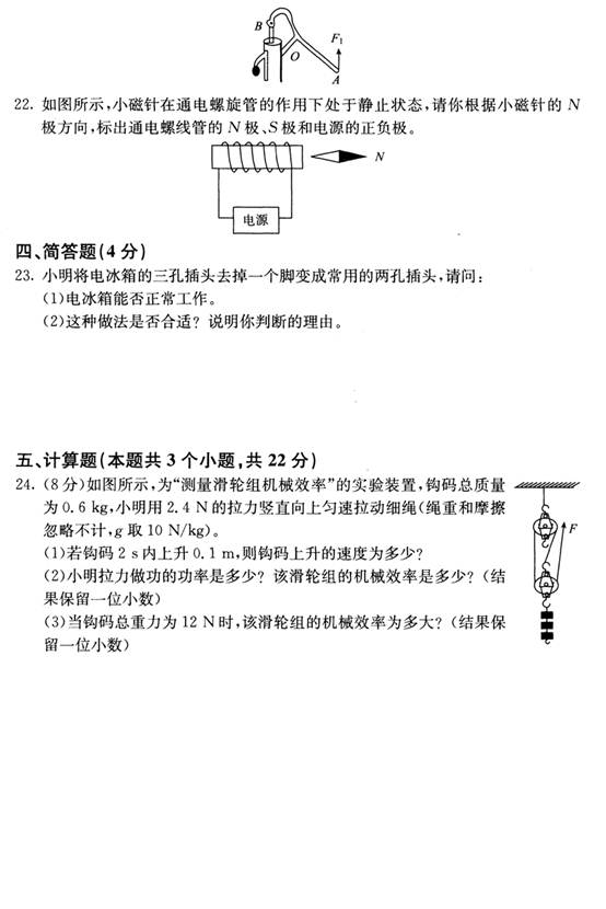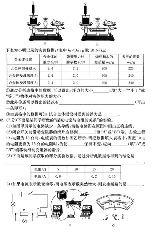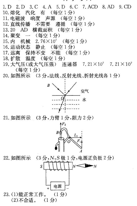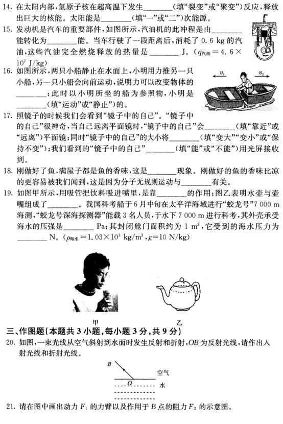 2014年内蒙古赤峰市中考物理真题试卷附答案(扫描版)