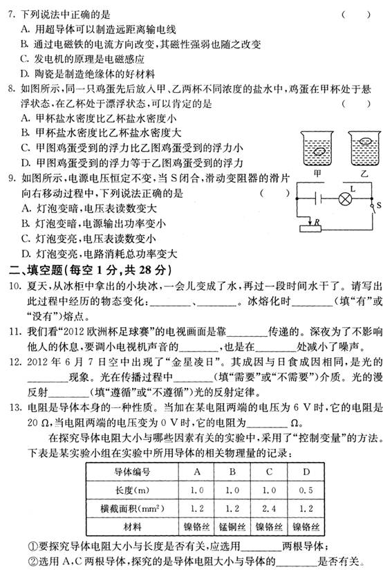 2012年辽宁省盘锦市中考物理真题试卷附答案(扫描版)