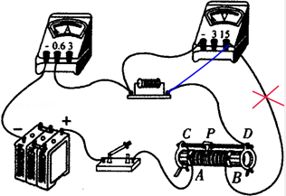 (2)由实物图知,电压表测量的是定值电阻和滑动变阻器串联后的总电压,实验要求电压表测量定值电阻两端电压.错误的导线和改正的连接方式如下图:
