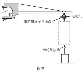 39.图18是一种新型吊运设备的简化模型示意图,图中虚线框里是滑轮组(未画出),滑轮组绳子的自由端由电动机拉动。工人师傅用该吊运设备先后搬运水平地面上的圆柱形物体A和物体B。物体A的底面积为