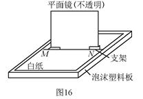重合,且使平面镜垂直于纸面,如图16所示,请你在图16装置的基础上,利用一把刻度尺和一盒大头针设计一个实验,证明:平面镜成像时,像到平面镜的距离