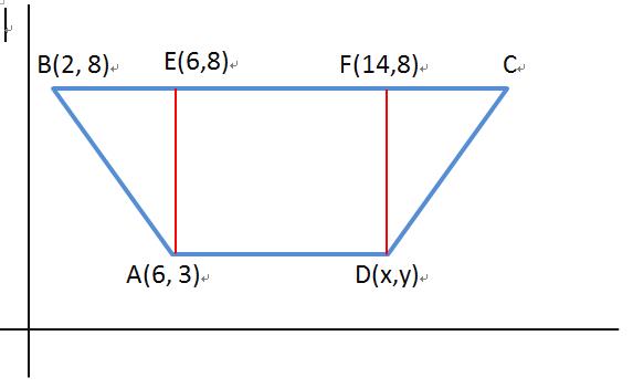 2. 有一Isosceles trapezoid(等腰梯形)ABCD,AD//BC,AB=AC。BC上有点E、F,使得AE垂直于BC, DF垂直于BC。题目告诉坐标如下(数字我不记得了,瞎编的)。求D点x-intercept(横坐标) 超级水题,14吐槽一下GMAC出题老头,给个图会死么。。。。题目一上来说一大堆坐标,其实画画就出来了。包括那道椭圆操场题,停车场有雪题,鸟飞行题,给个图会死么亲