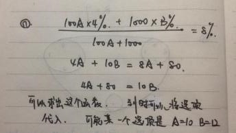 16. 在一个一年期的单利模型里,一个人投资了100A,利息4%,还投资了1000,利息百分之B%。一年期的平均利息是8%,问A,B。