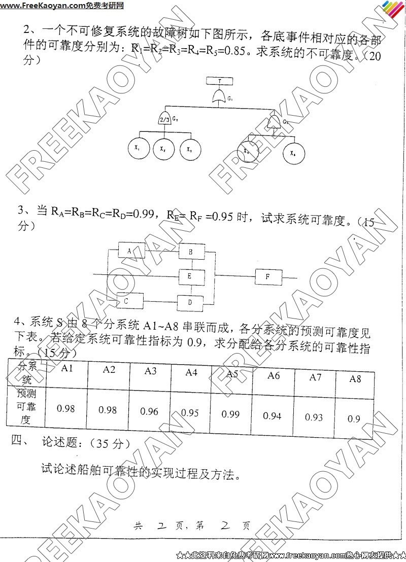 上海交通大学2005年系统可靠性工程专业课考研真题试卷