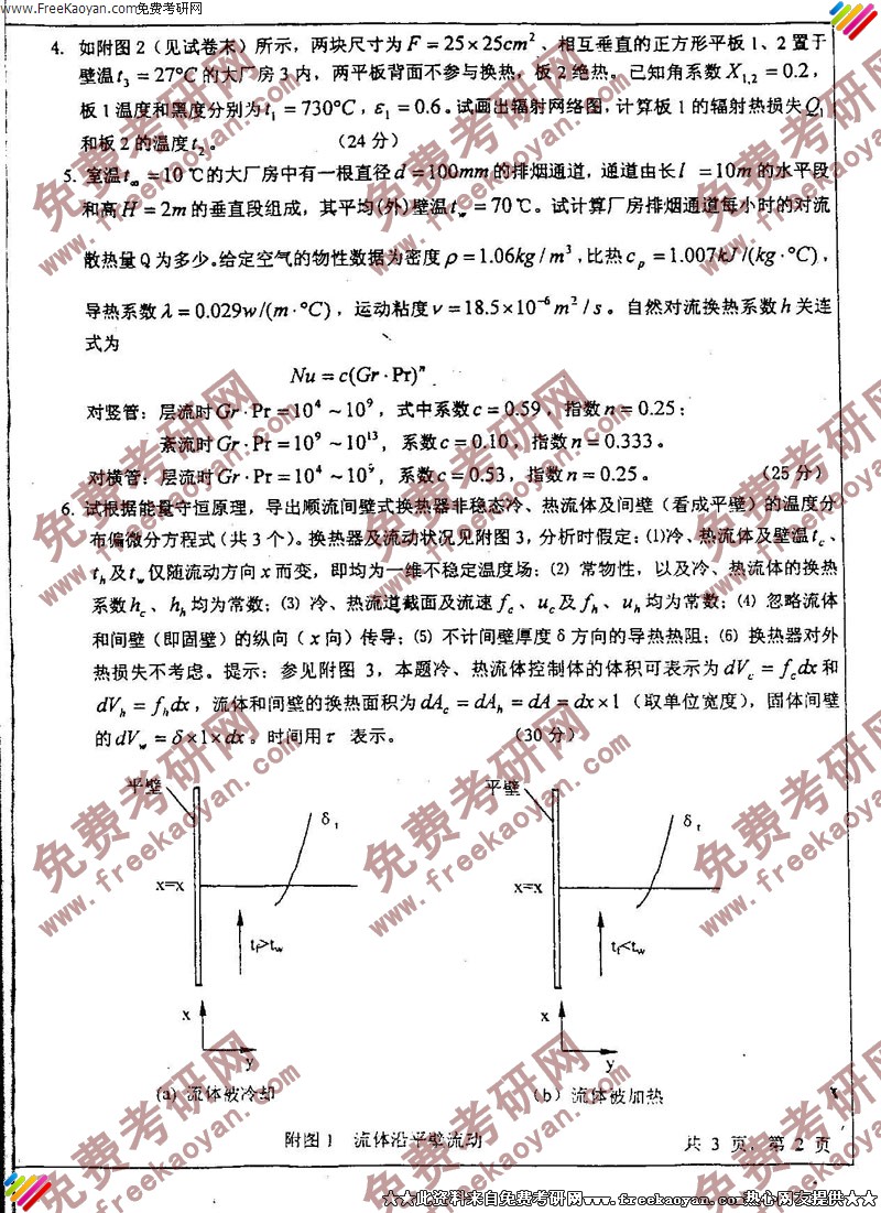 上海交通大学2005年传热学专业课考研真题试卷
