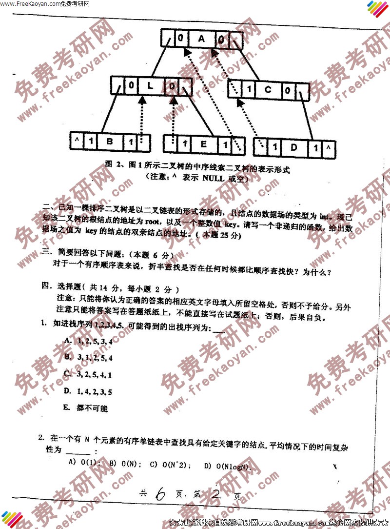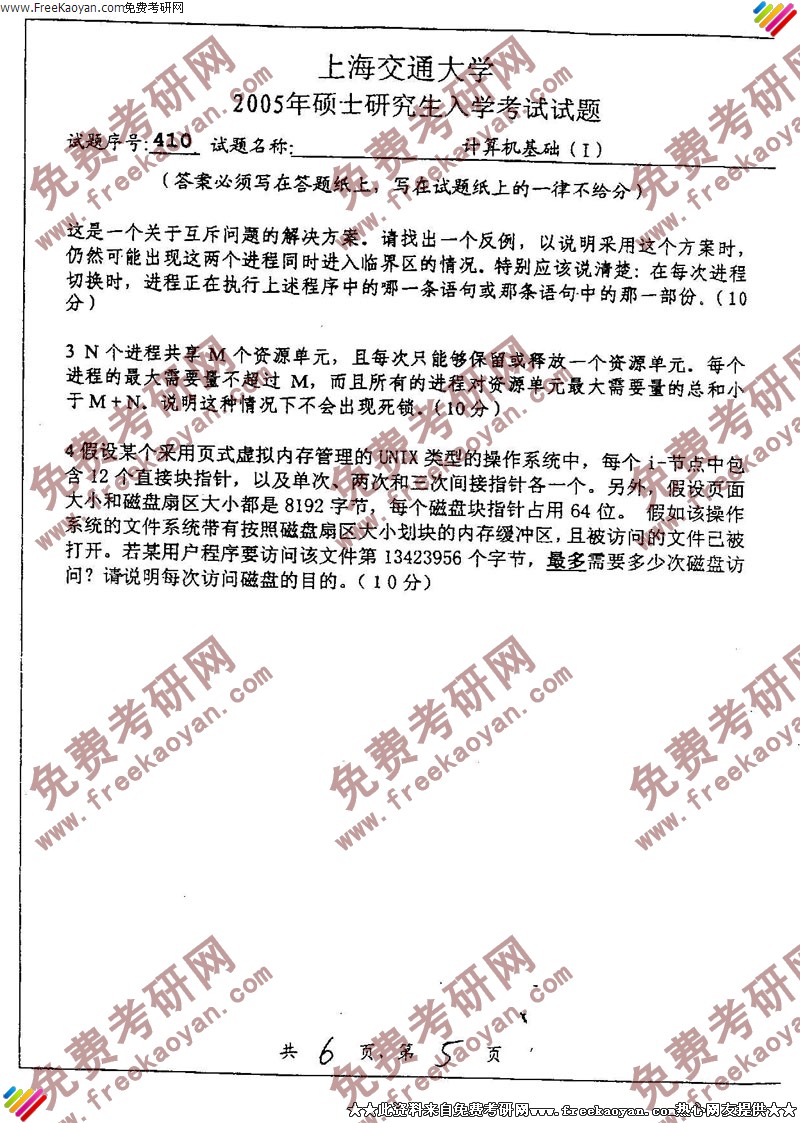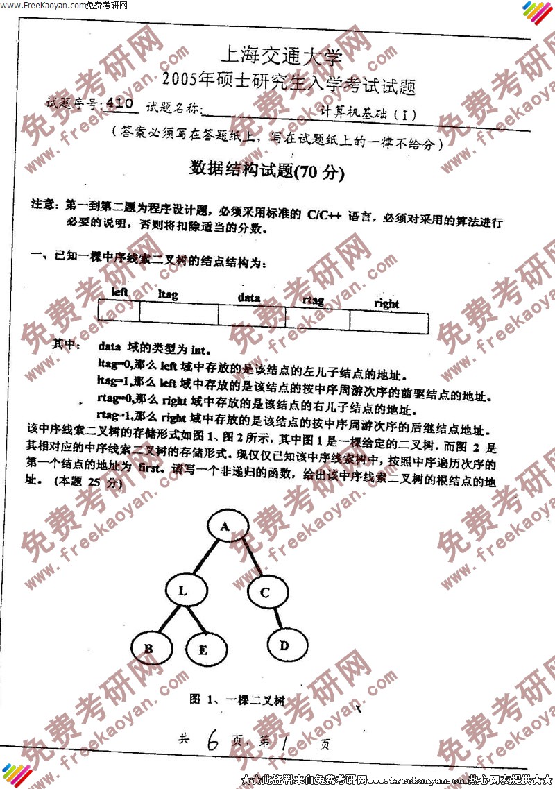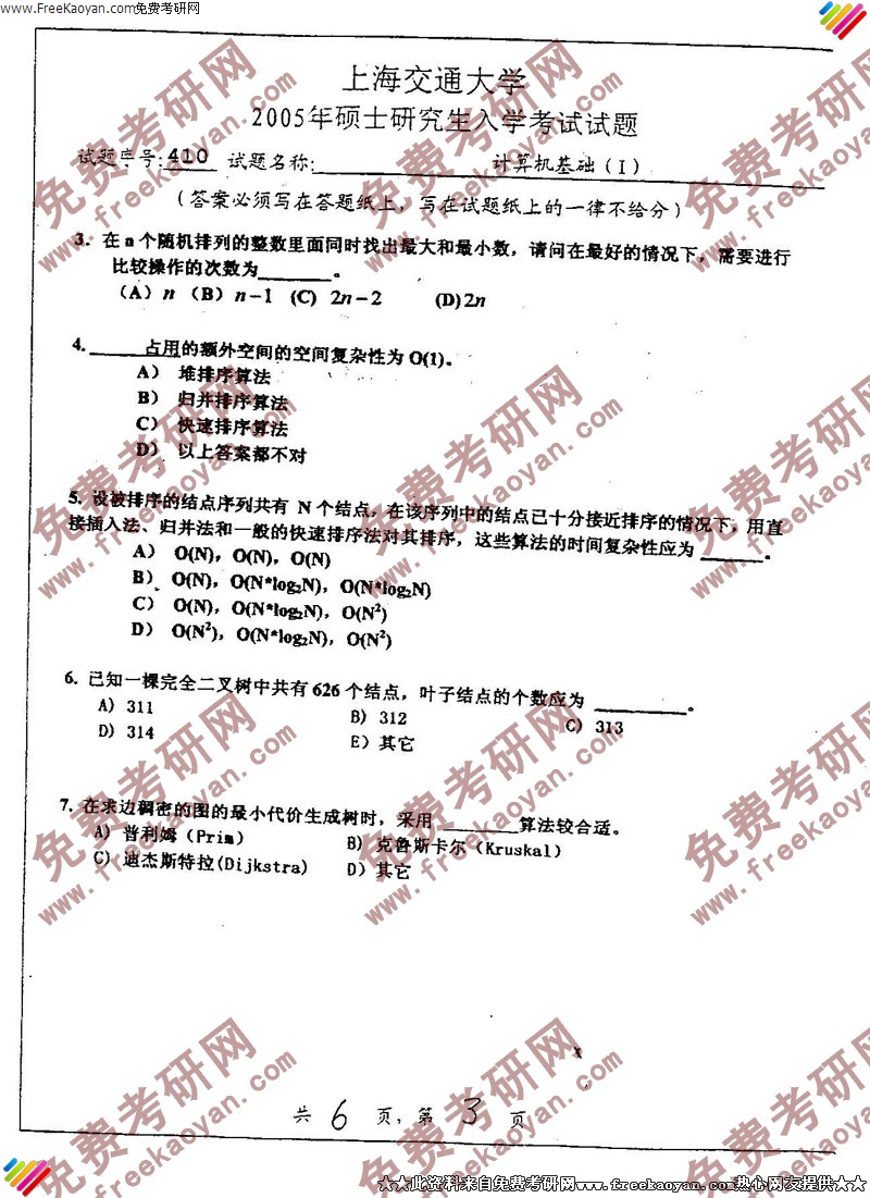 上海交通大学2005年计算机基础(1)专业课考研真题试卷