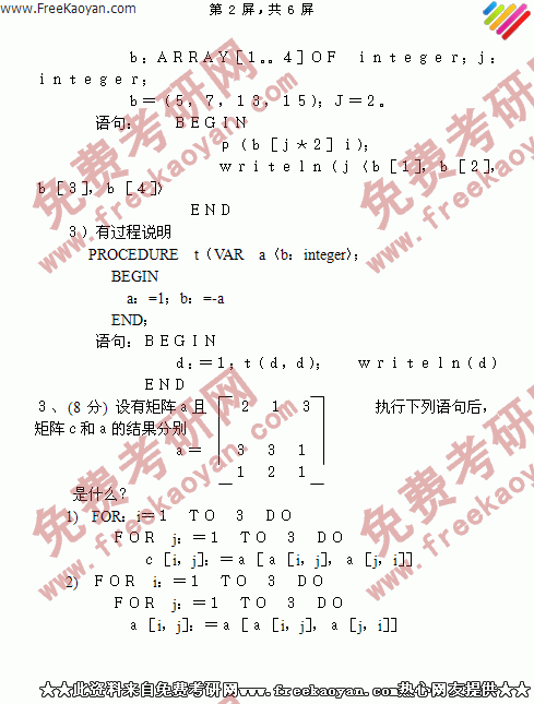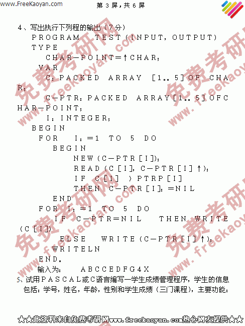 浙江大学2000年计算机专业课(乙)专业课考研真题试卷(回忆版)