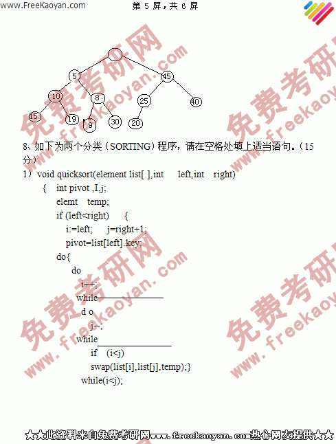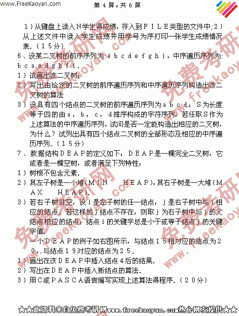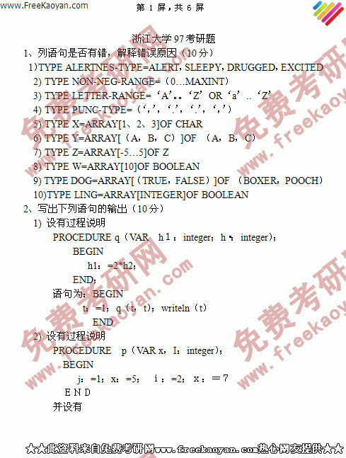 浙江大学1997年数据结构专业课考研真题试卷(回忆版)